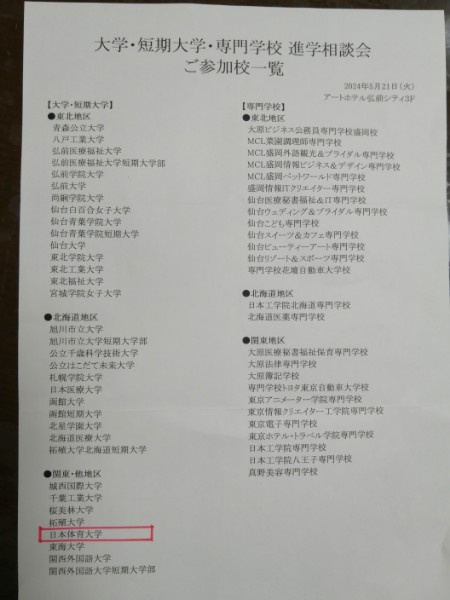 今年も「大学進学相談会」が弘前市アートホテル弘前シテイに於いて、参加校は「大学・短期大学」が、東北地区15校、北海道地区11校、関東・他地区8校、他に「専門学校」26校が一堂に介して開催されました。